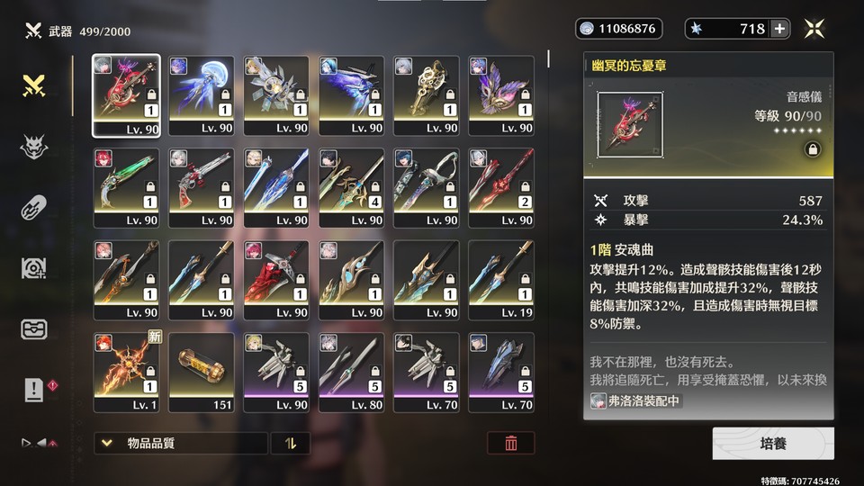 【80等、25金角、19金武】6+2 椿 6+1 柯萊塔 長璃 4+1卡提 多專武 全探索度滿