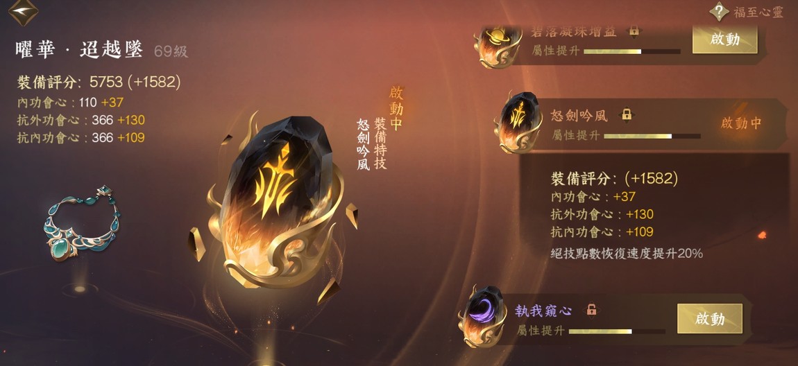 【69等、楓橋夜泊、女、九靈】楓橋/日月 碎夢神兵/90神兵天賞n 90天賞3顆綁定未用 畢業打造 內功