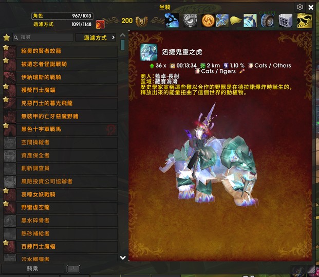 坐騎pve:非當前版本副本(5人+團本)內的坐騎除了奈薩的水母以外,其他沒記錯已經全部都已經有了。當前版本的話大G已有,ASMR尚未取得