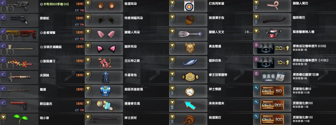 永久槍枝跟道具已截圖在上圖中