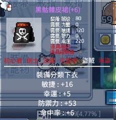 【21屬盜賊賊褲】80等黑骷顱皮裙16敏5幸運頂級畢業裝