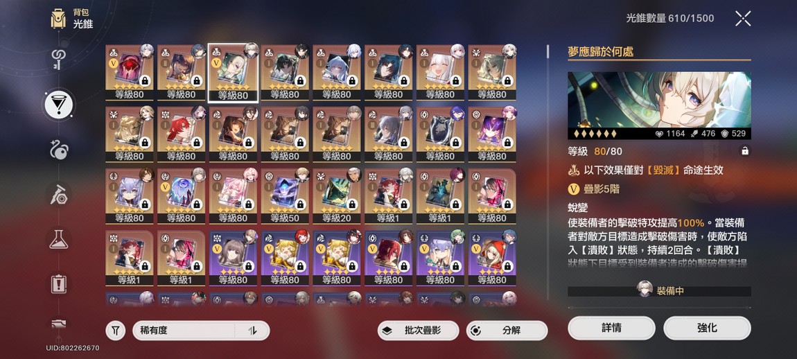 【女、70等、33金角、32金專】105金 6+5流螢 6+2雲璃 滿命大鴨 2+1風堇 黃泉 多資源 完整記憶隊