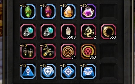 牧:十字 , 13一套十字符文, 飾品:項鍊耳環+20增幅古代/雙亞姐光攻戒指 , +9骨龍主副