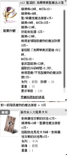 +13 1S 烏爾蒂奧聖魔法斗篷 對一般階級魔物的魔法傷害10% 黃肉食人火龍果卡片