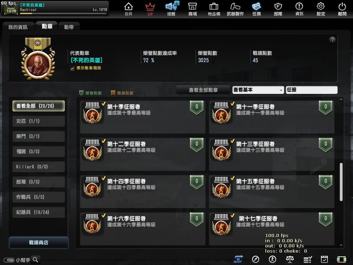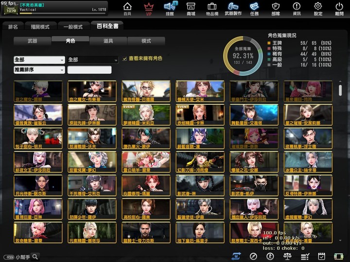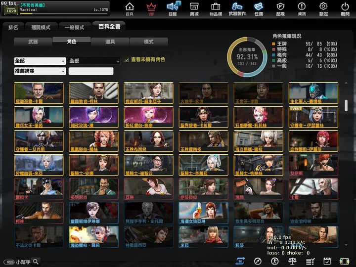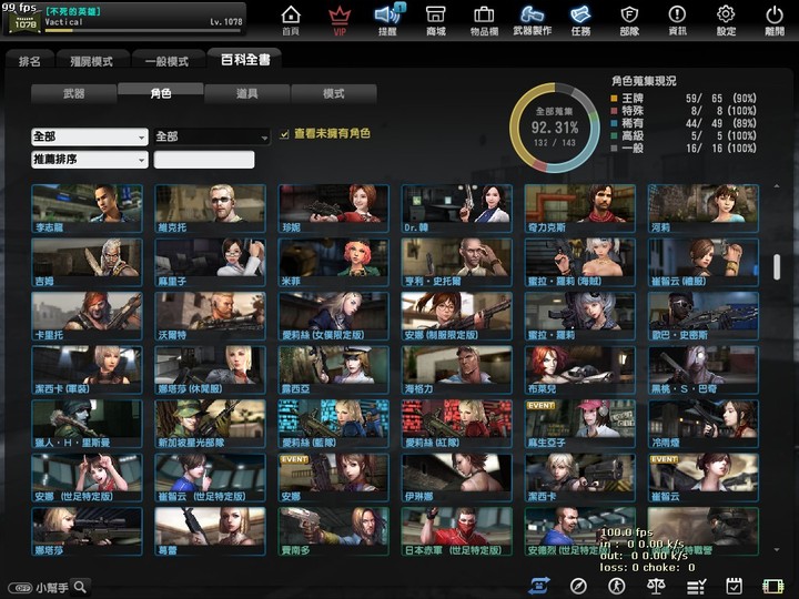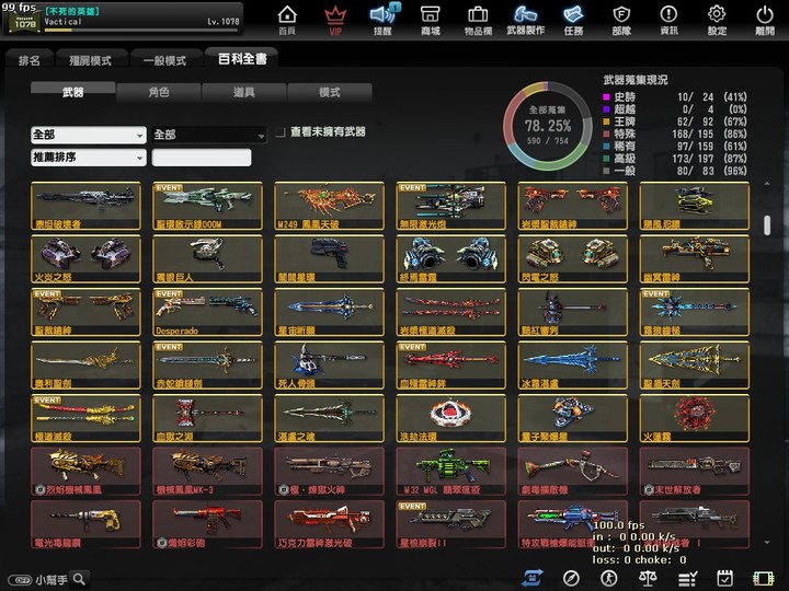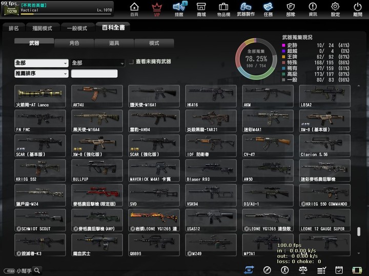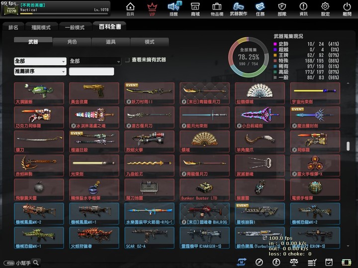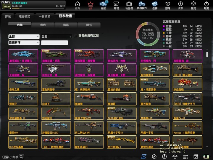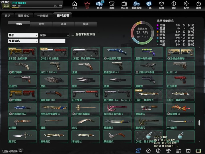 【10史詩武器、62王牌武器、59王牌角色】千等 水藍稱 雙暗影 多絕版槍枝 78% 人物92%