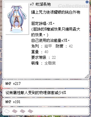 【+7皎潔長袍】MHP+408、無屬性物理6%