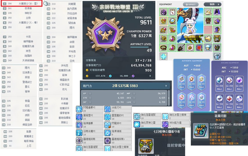 【286等、大魔導師(冰、雷)、9611戰地、660AUT】整組含裝備 輪燒 p寵 只要這個價錢實收