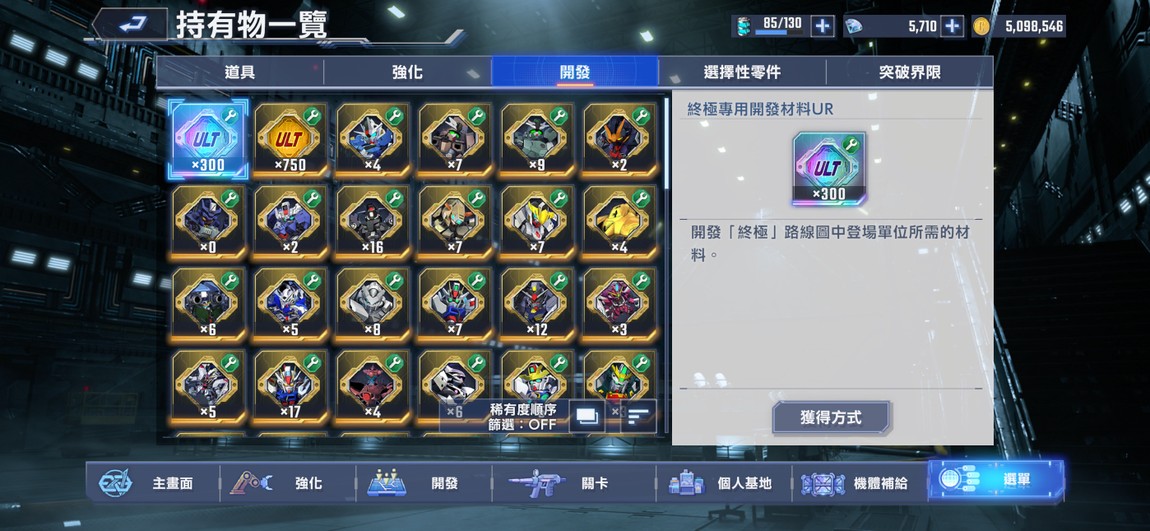 46隻UR機體,兩隻最新限定機體滿突:神威、綠獨角獸
