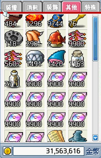 身上卷軸超過100雪(短劍60*11、披敏60*5、手攻60*3、10*4、套敏套幸鞋跳...等等