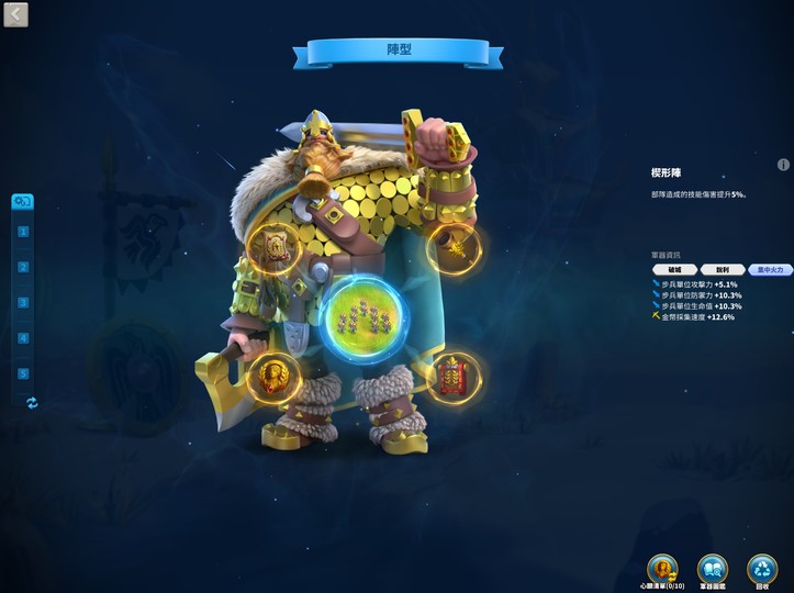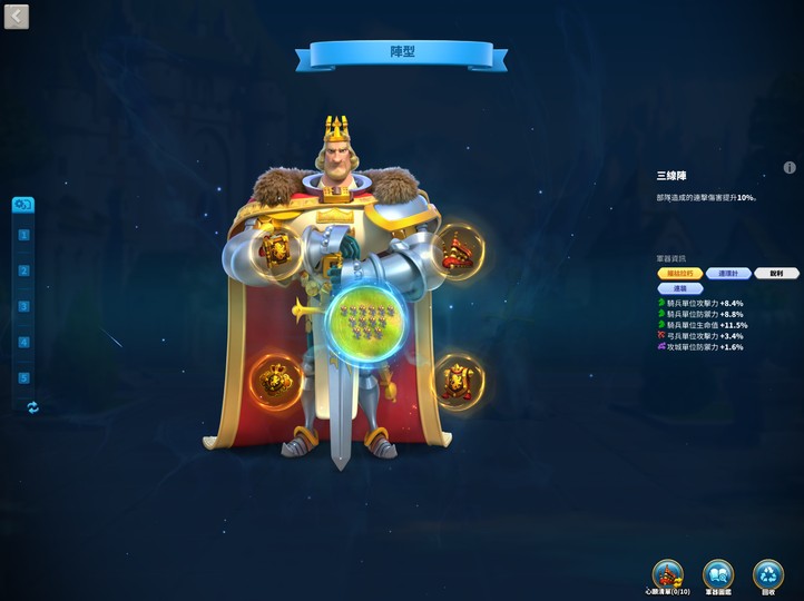 拱型陣心願已過半,沒意外還會再一個澄色4字(右上或是左下),野戰五個號角,集結裝備可以抵擋90%的集結/駐防