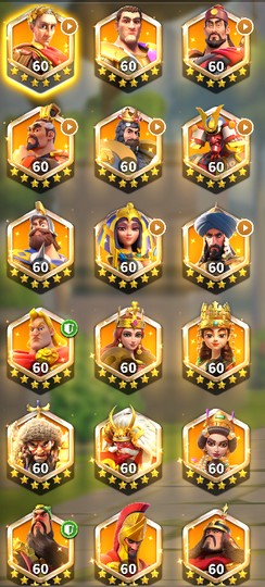 弓兵:李成桂,尼布甲尼撒二世,亨利五世,布狄卡P,蒂朵,諸葛亮,亞述巴尼拔,崔瑩,席德,秦始皇贏政,沙普爾一世,5551海爾曼P,5525阿爾特米西亞一世,5345托米麗斯,