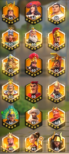 步兵:但丁,理查,查理馬特,亞歷山大,關羽,斯巴達,芝諾比婭,拓俊京,巴加爾二世,戈耳戈,華萊士,郎納爾P,第六代野戰西匹,劉徹,第九代集結西匹,5522塔里克,5524白起,270金頭德川家康