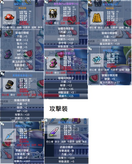 卷軸太雜不詳列 有:槍攻10%*9、槍攻60%*7、槍命60%*39、鞋跳10%*13、拳套攻擊10%*3...等