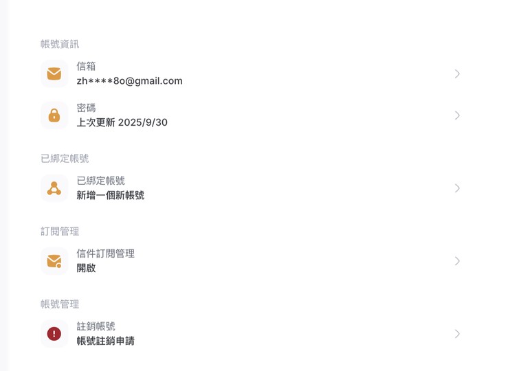 物品種類: 帳號