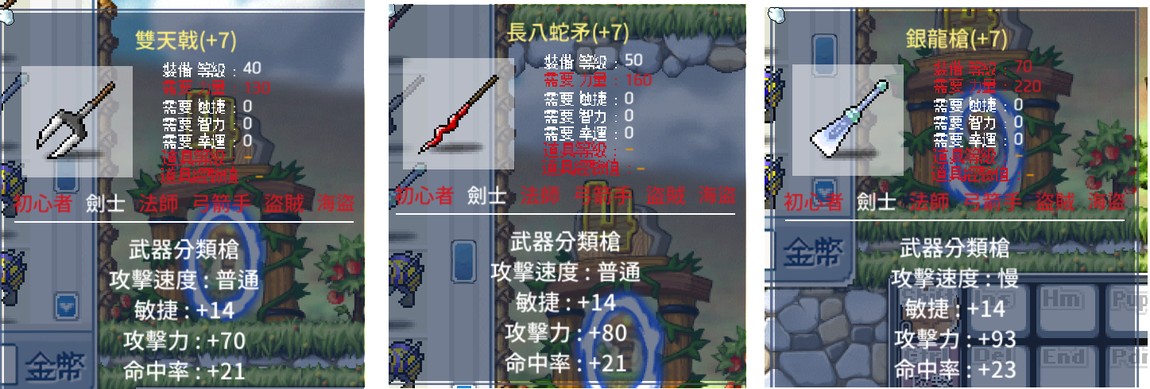【劍士金字長槍40~70整套】雙天戟+長八蛇矛+銀龍槍 全都金字14敏21命中
