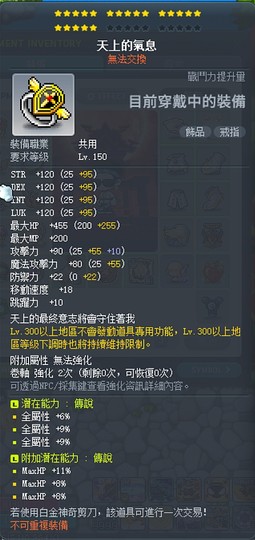 主潛能是6 9 9全屬要打 附加是 11 8 8%hp 天上復仇者頂級戒指