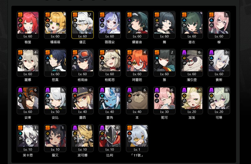 另外也有連體崩鐵 絕區 都有一定練度 如圖可參考