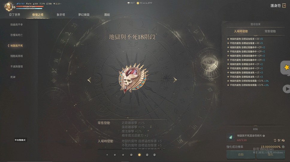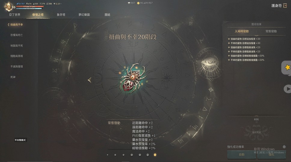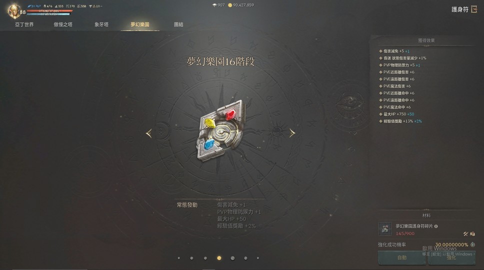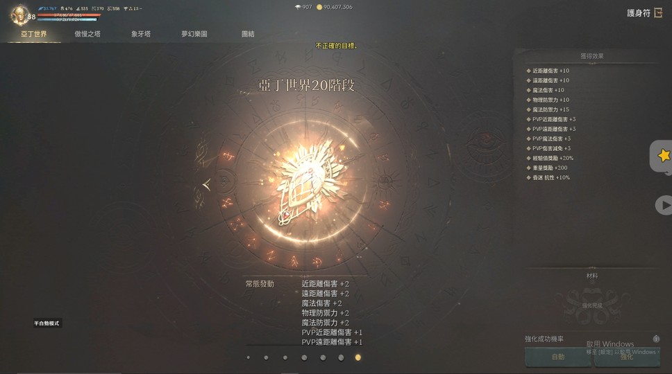 裝備:+8祝福沙哈(刻印) +7庫庫爾坎頭(非刻) +5祝福世界樹盔甲(非刻)