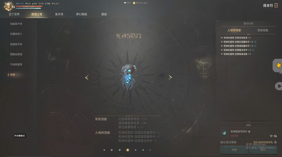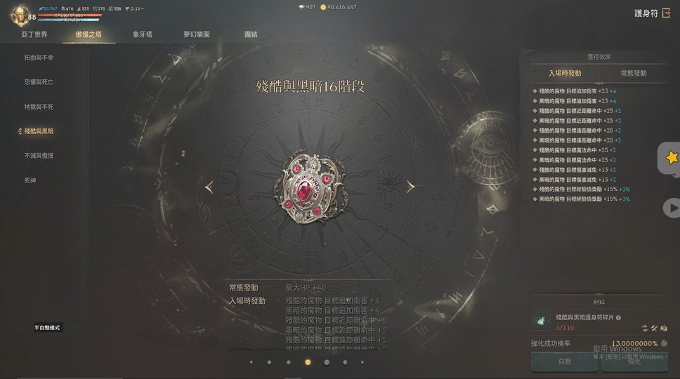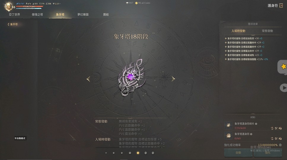 護身符亞丁20/象塔17/夢幻15/奧12:20/奧34:16/奧56:17/奧78:15/奧910:14/頂樓:4