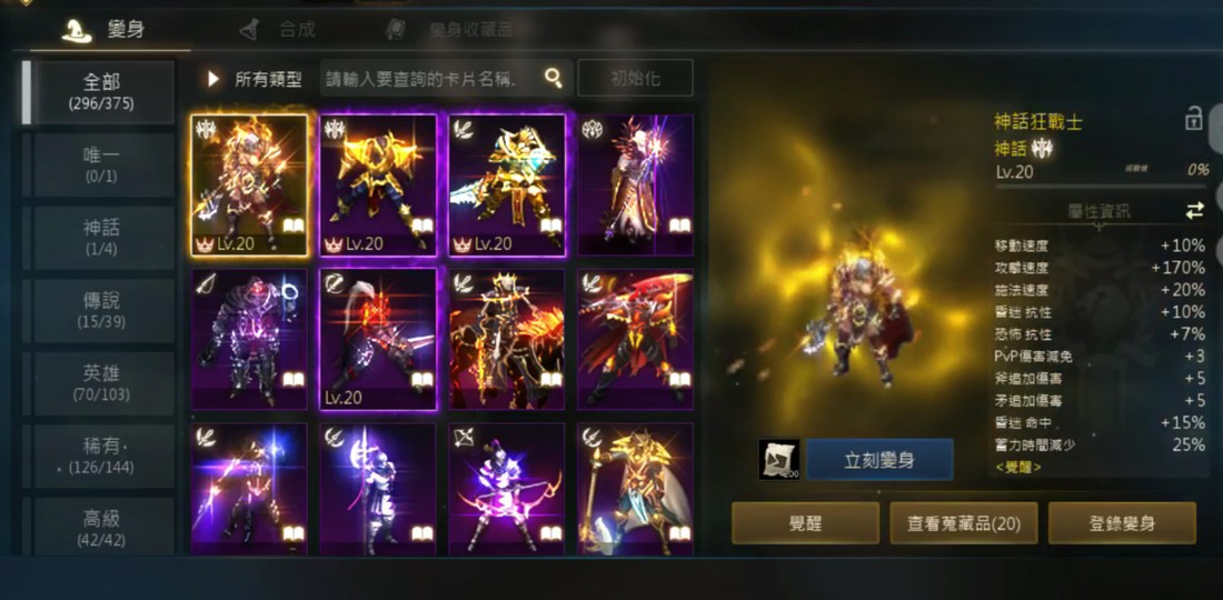 【狂戰士、91等、重生服鐮刀】金變金娃雙金技紋樣3圈滿