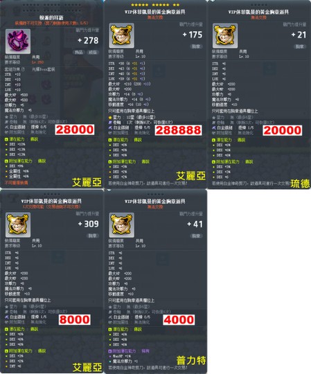 艾麗亞 VIP休菲凱曼的黃金胸章道具 傳說18%智 附加傳說2%全2%全 7000T含剪甩賣