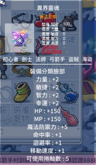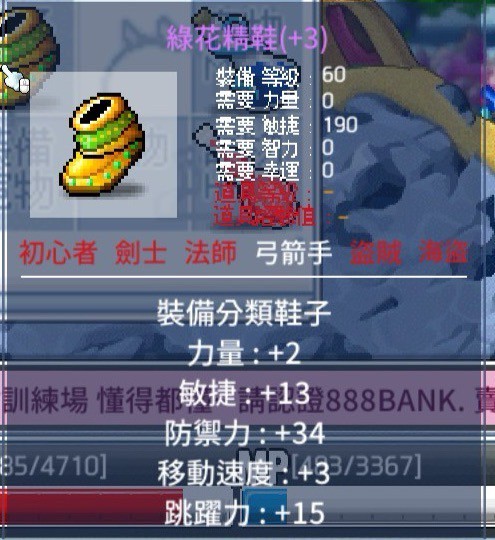 鞋跳10% 277張、鞋敏10% 1443張、披風幸運60% 42張、弓攻擊力60%175張、弓攻擊力10% 115張。