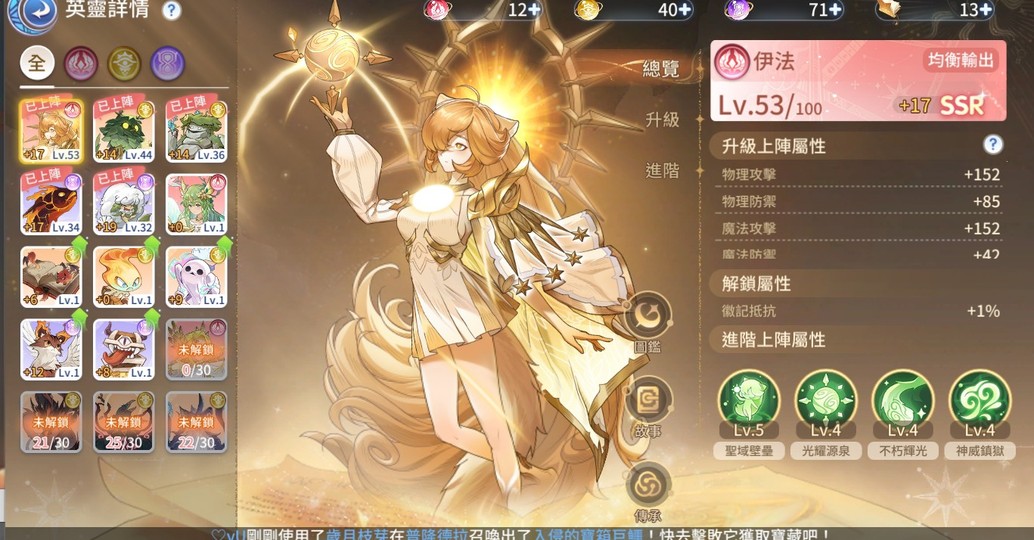靈能:虎王40 黃金蟲38 凱美拉10 其他如圖