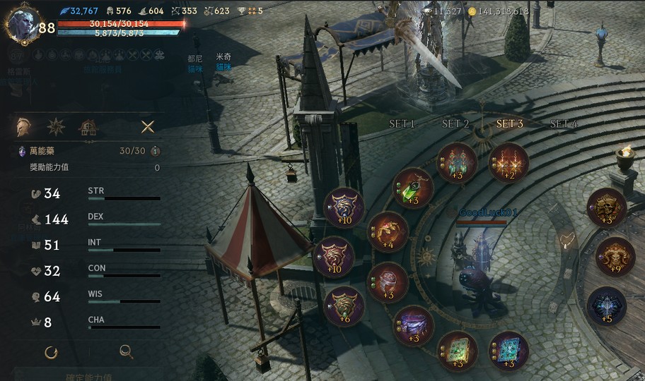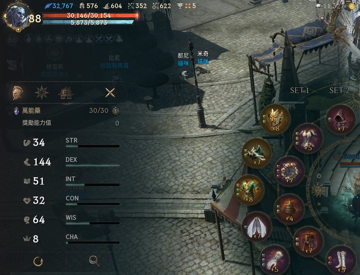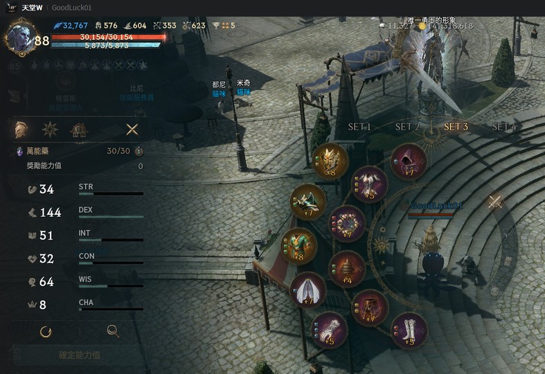 【羅剎、88等、甘特】11金、最高攻命防352/623/580、1金6紫技、火眼滿分