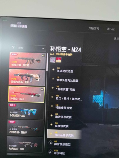 孫悟空M24《8級》 妖魔之處ace《2級》 彌諾陶洛斯Aug《3級》 Akm暗影纏身 阿斯頓馬丁V12《綠藍黑三款皮膚》 Pgc2022戰術科技上衣 危險玩偶屋電波干擾揹包 維納斯俱樂部服飾套裝 黑白狗熊 老黑 還有很多傳說衣服等等通行證套裝等