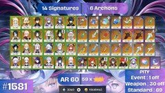 【女、60等、36金角、22金武】⭐茜特+瑪拉妮+水龍+胡桃+妮露+希諾寧+綾華+基尼奇+夜蘭+魈+草雷水神皆專武