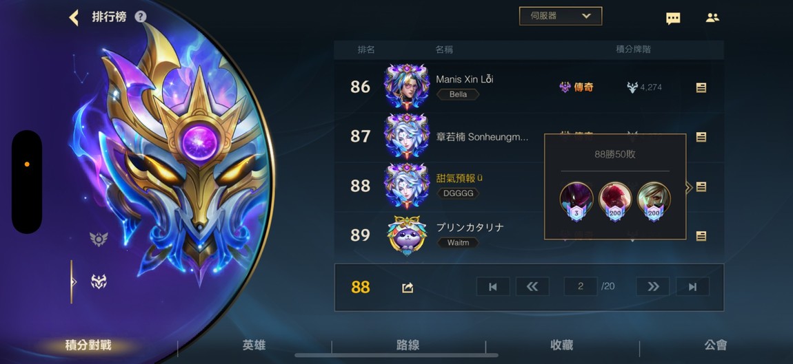 📌 S17帶老闆打上國際服榜一S18傳奇積分伺服器前100