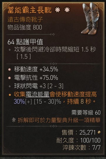 S10法師靴子 電法專用 2太古移動速度+電抗,球狀閃電+3