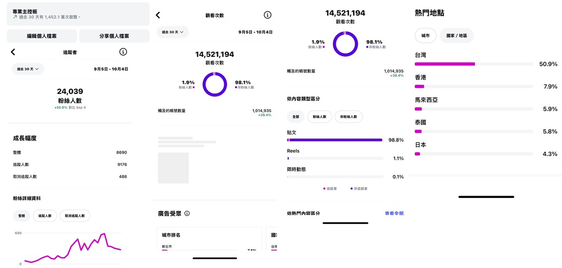 【999等】2.4萬美女號 台灣粉48%以上 連結脆4萬粉