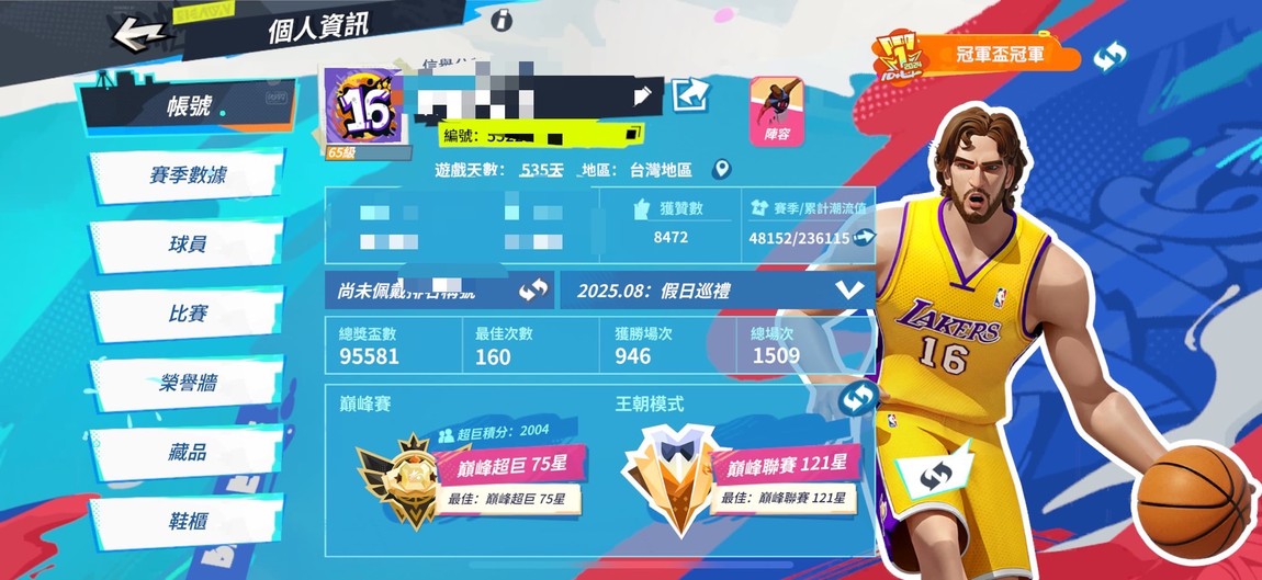 【65等】冠軍稱號、20隻滿突、斷滅、機甲、搖滾整套、玩具一堆、多資源。