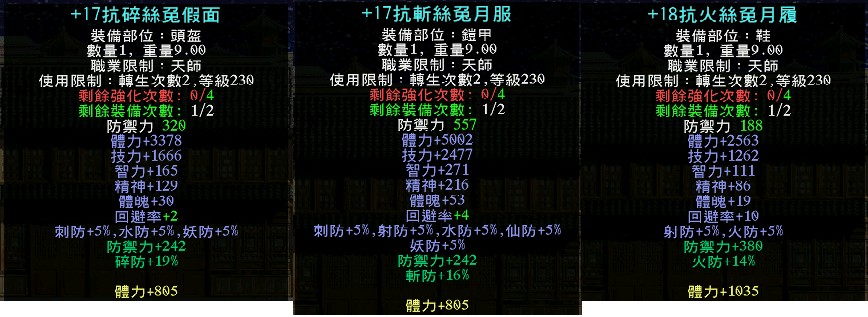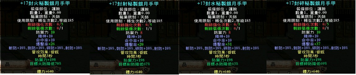 武器裝備素質全在圖上皆有附