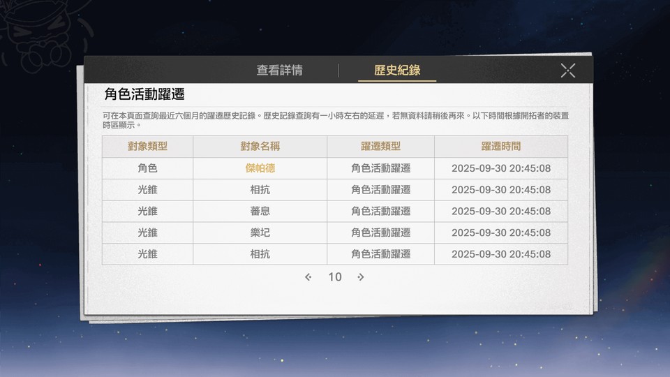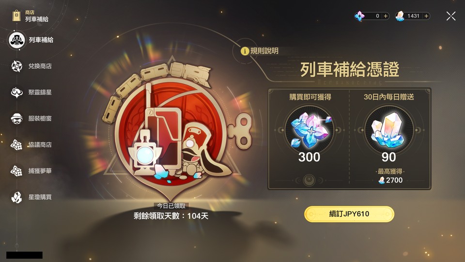 截圖為2025/10/09時的,大小月卡後續不更新圖