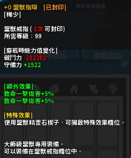聖獸指環 致命一擊傷害 爆傷 10% 已封 全新 未有精靈