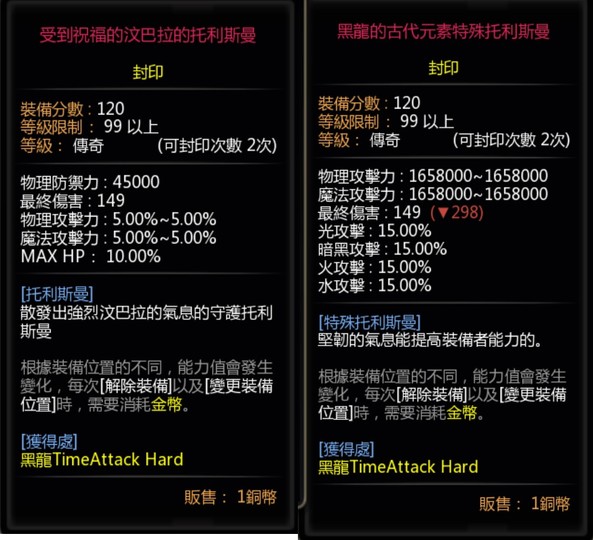 退坑出清-黑龍的古代元素特殊托利斯曼、元素托