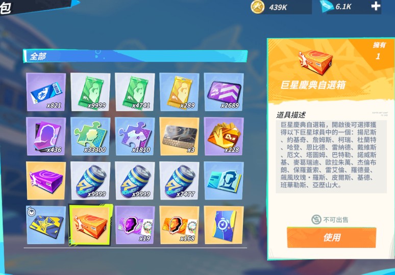 包包有168張巨星券(鑽石拿去買巨星券可買滿208張)可自選要抽哪一隻球星+自選箱+球星碎片 可自選喜歡球星五突破 (碎片差2700快可以換滿突破)