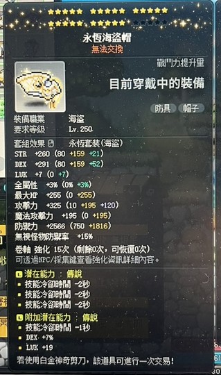【永恆海盜25c -7cd 7敏帽】永恆海盜帽 -7cd