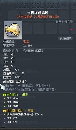 【永恆海盜肩膀】次頂傳罕3排等同副加大雙