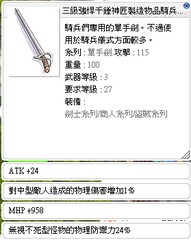 排名三強騎兵之劍 ATK+24 MHP+958 中型1% 無視不死24%