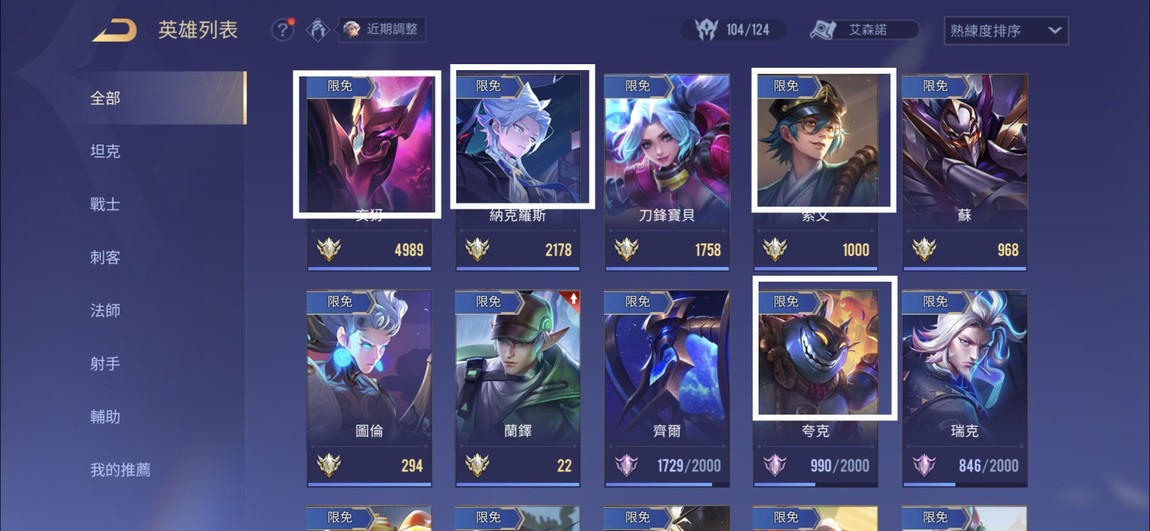 【G帳手機未綁信箱可改、鑽石、V8、104英、158造】傳說對決二服號一手號 勝率60 野王 射手抽獎造型 多直購 單gmail整組給