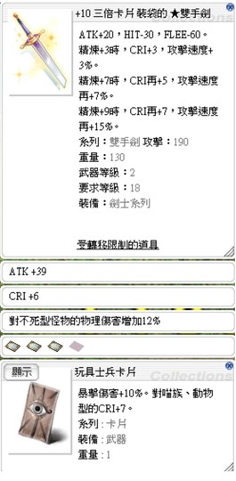 +10星雙手劍~三倍卡片袋裝的~ATK+39~CRI+6~不死傷害12%