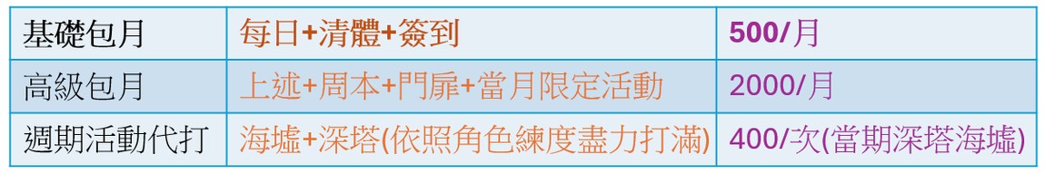!可包長期每日+刷(清)體力 + 簽到 + 周本