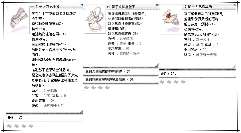 幻影太九連 盧恩騎士石(頭中) 影子冷氣息神盾 影子火氣息手套 小巴風特降落傘