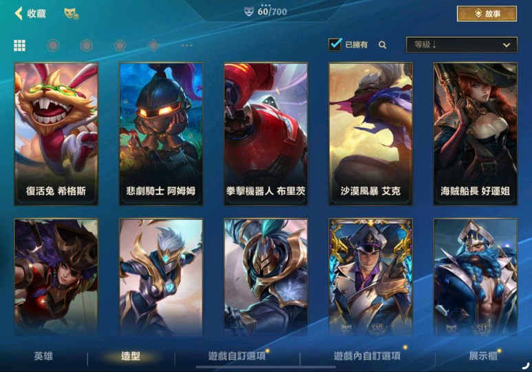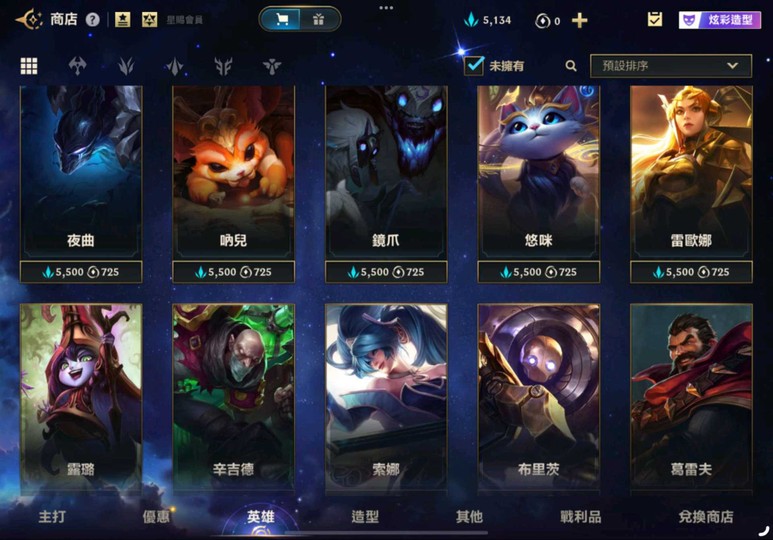 除了商城的10隻英雄沒有其他全部都有,目前段位在翡翠可以立即上手