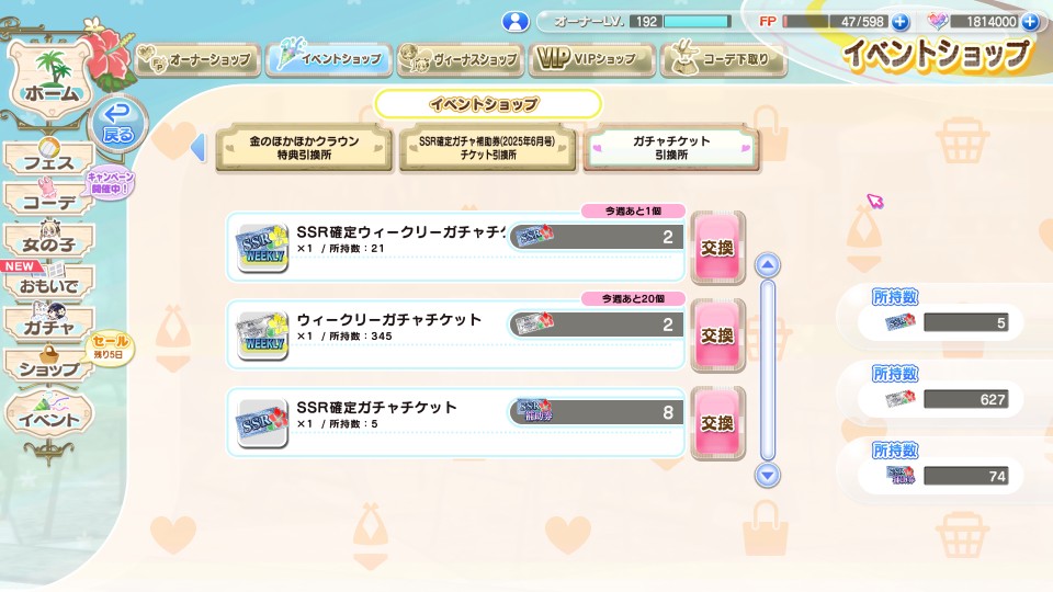 SSR飾品66件、SSR卡片90張、SSR+卡片6張