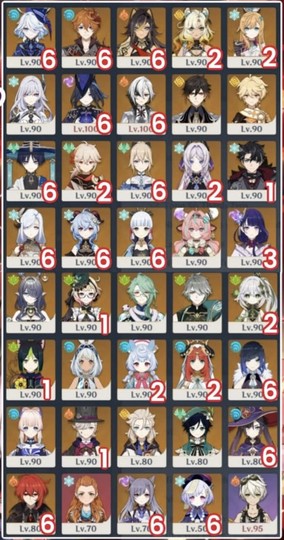 【男、60等、63金角、60金武】僕人6+5克洛6+1水神6+1夜蘭6+1散兵6+1申鶴6+1綾華6+5公子6+0
