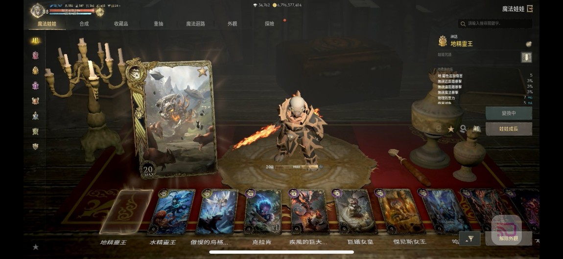 【娃娃收藏】: 收集卡片(72.45%)、完成收藏品(47.88%)